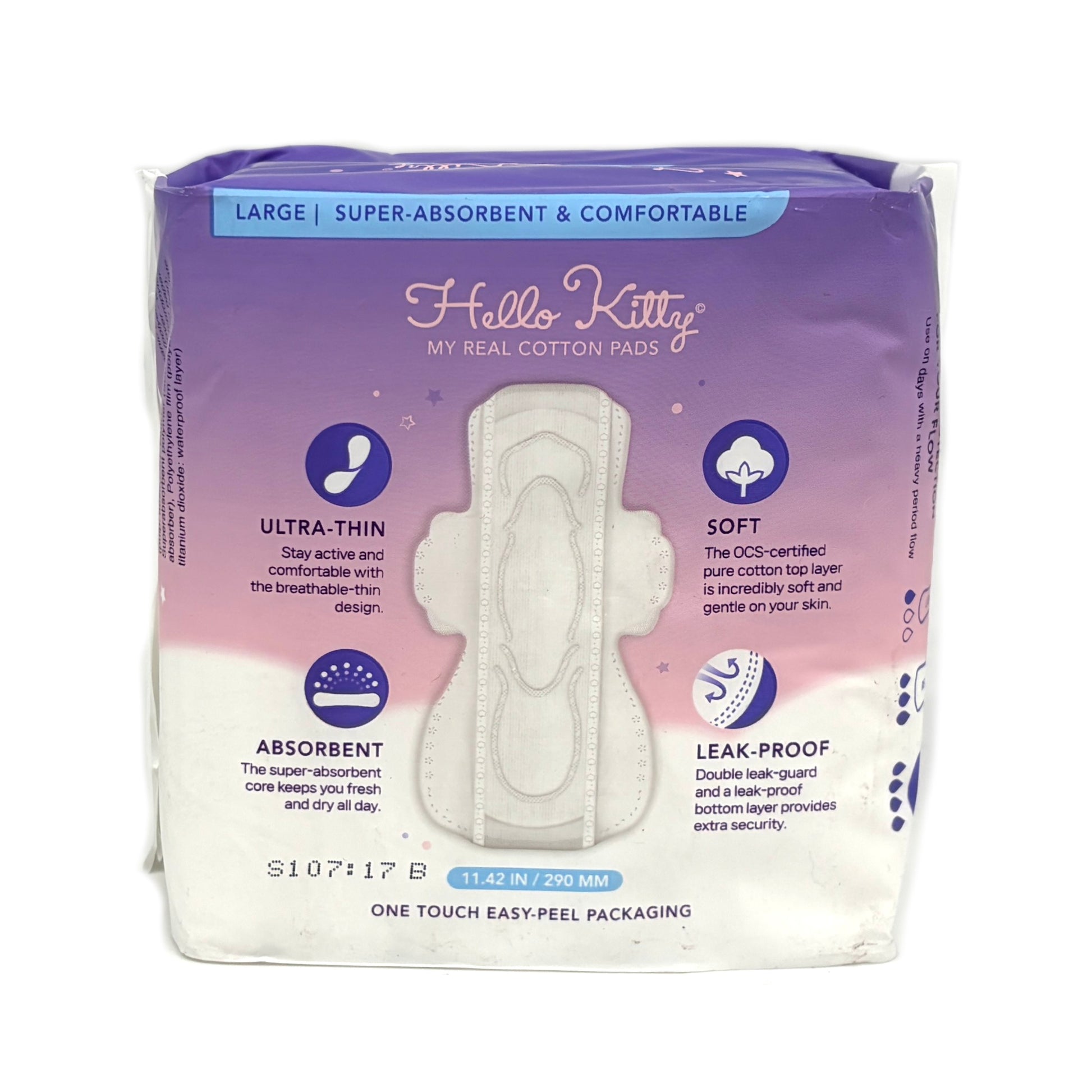 Hello Kitty My Real Cotten Pads Certified Organic Cotten Cover Large (12pads)
